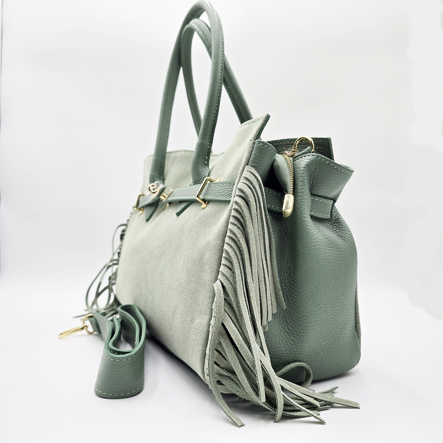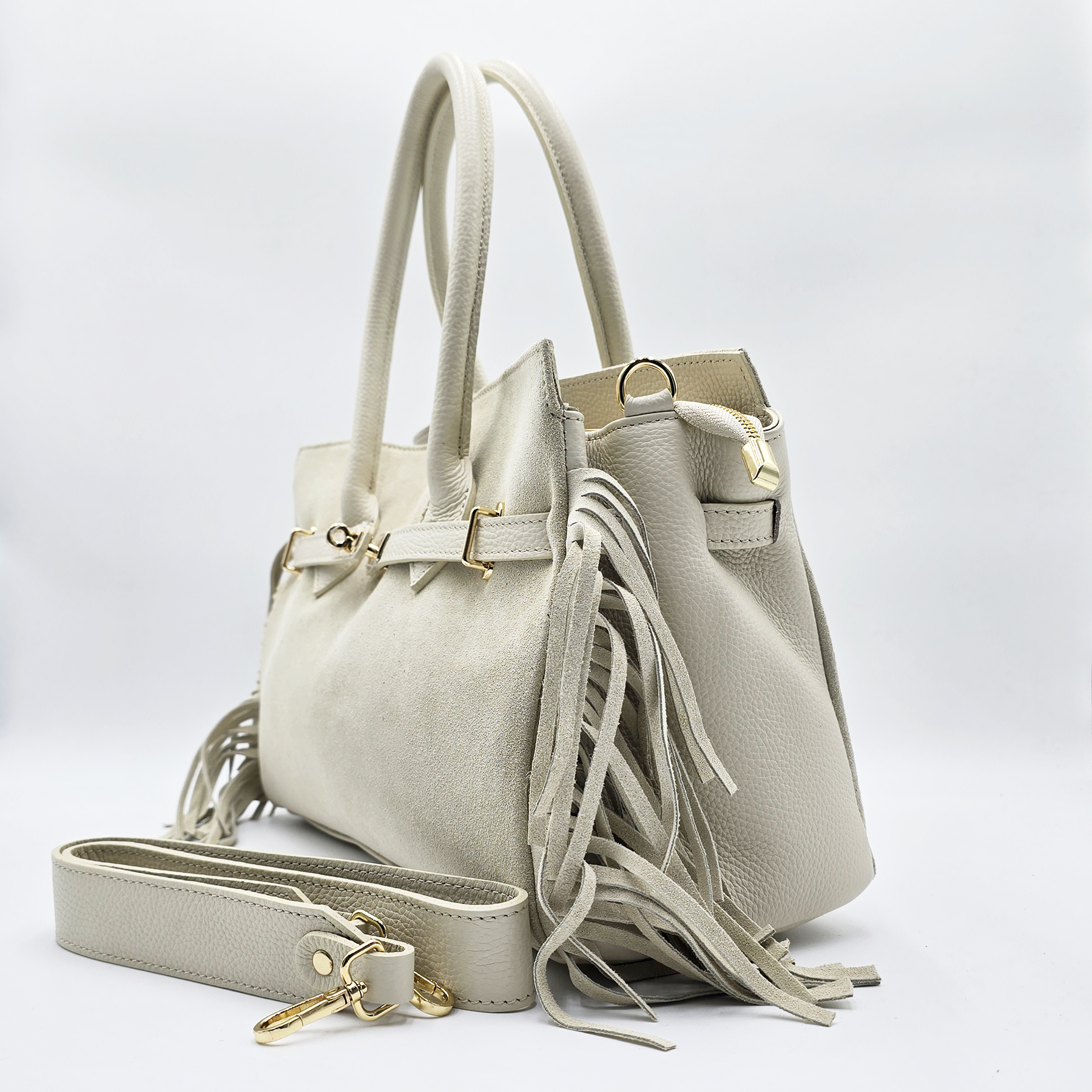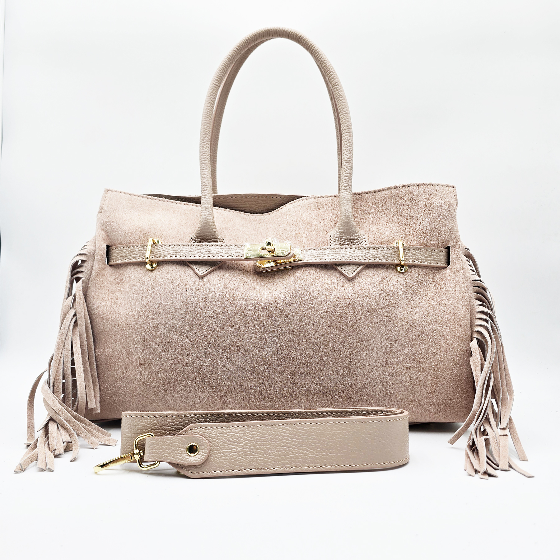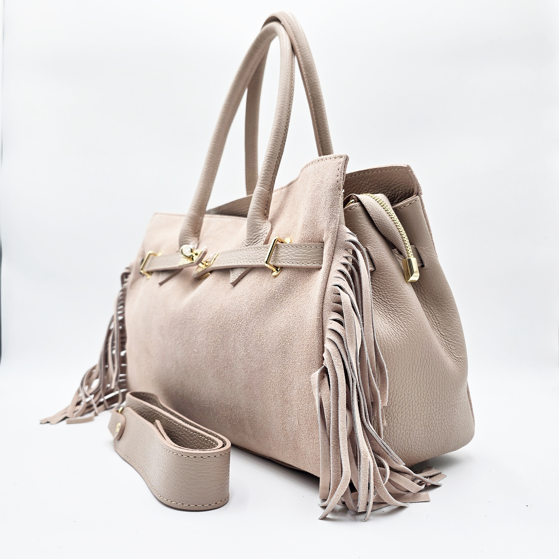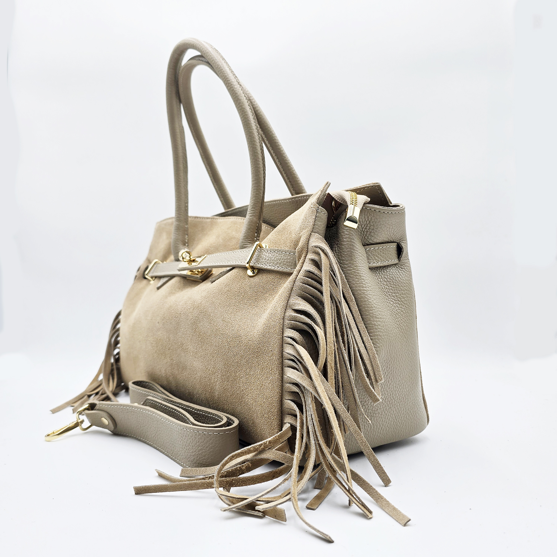 La Borsa Portofino incarna lo spirito della riviera italiana: sofisticata, solare e intramontabile. Questo modello si distingue per il gioco di contrasti tra la struttura in Vera Pelle Martellata, che dona vigore e resistenza, e i pannelli in Camoscio che aggiungono una morbidezza tattile e visiva senza pari.