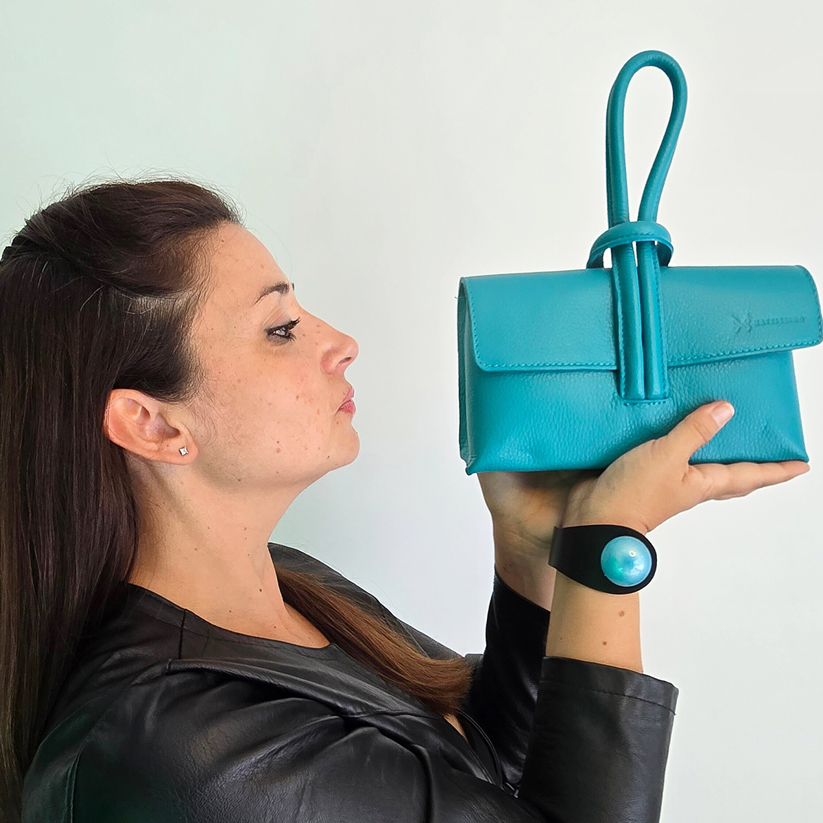 - Dettagli distintivi: La caratteristica principale di questo modello è la maniglia, creata da due occhielli in pelle che si incastrano l’uno nell’altro, formando un sistema di chiusura e un elemento di design unico e inconfondibile.